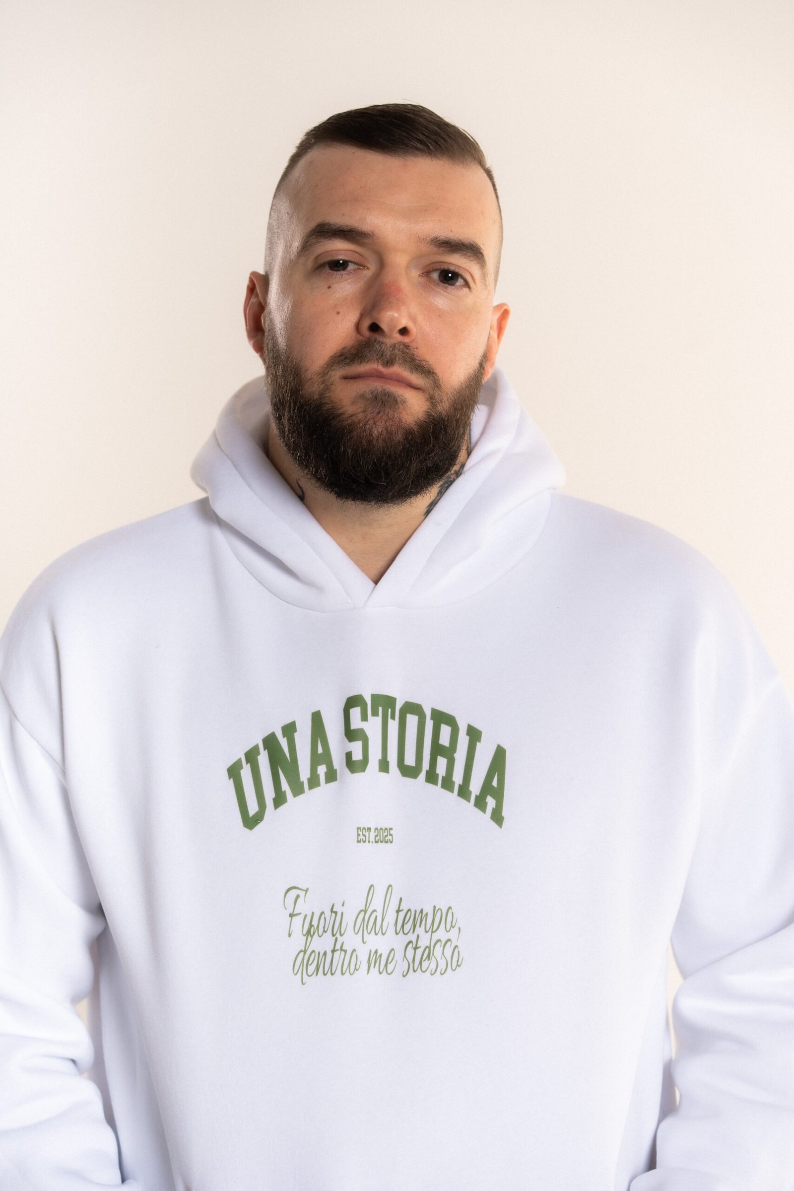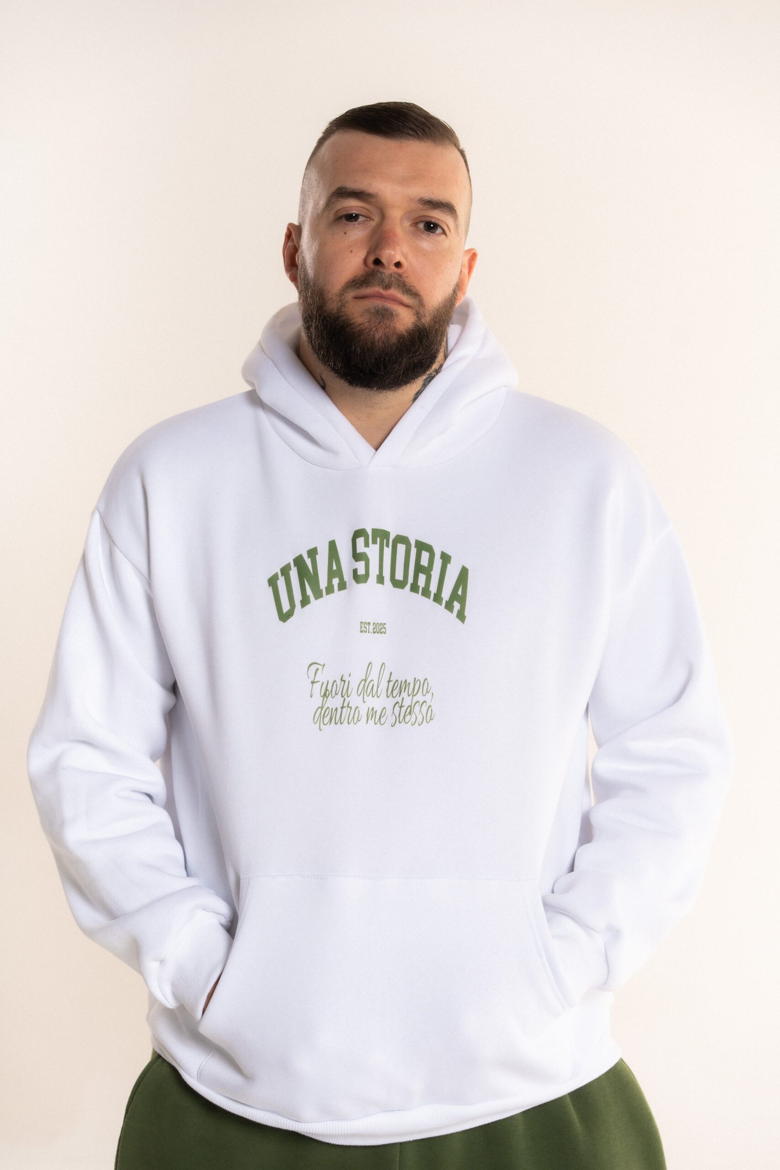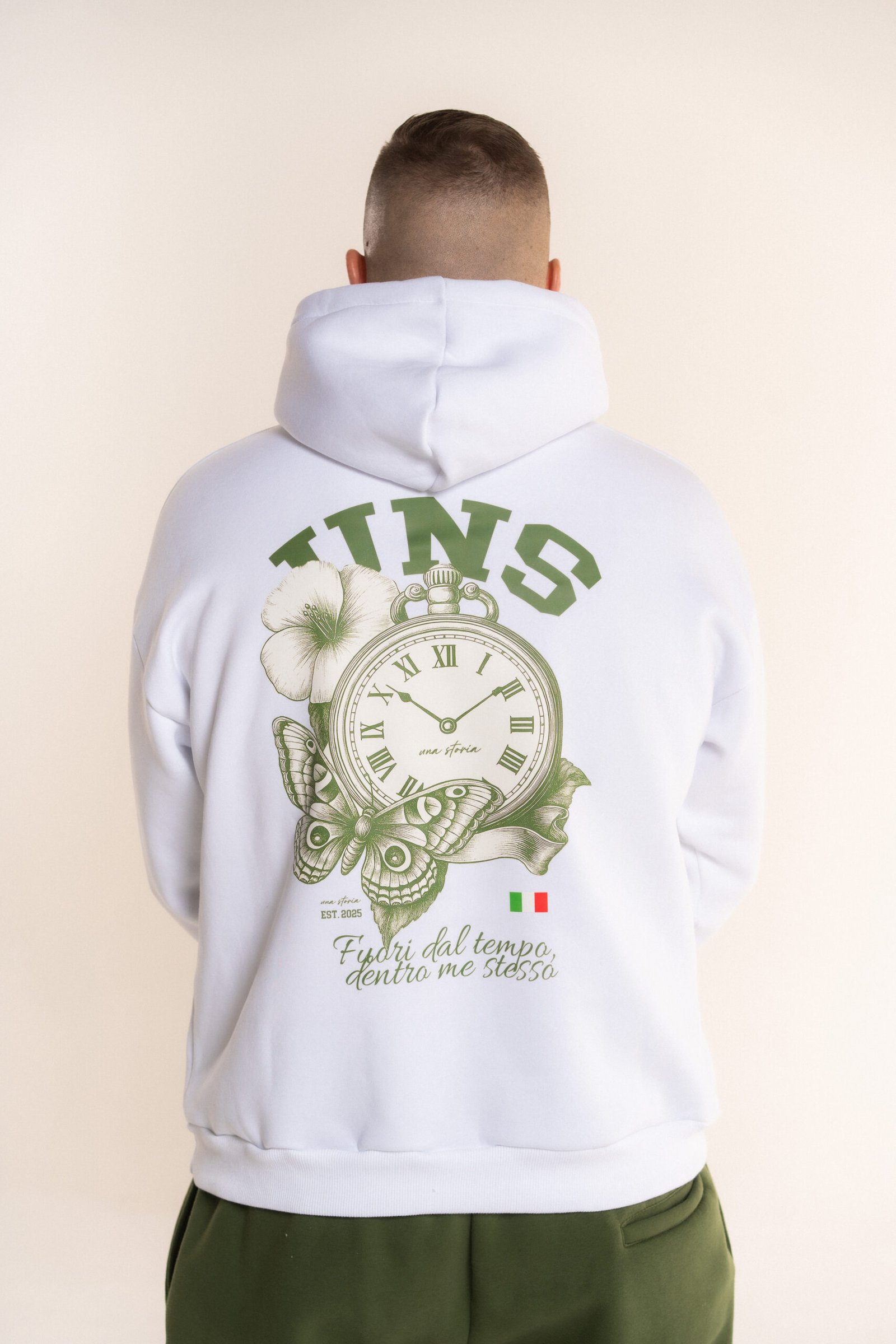 Time Motion дуксерот на Una Storia е создаден за мажи кои никогаш не мируваат. Модерната линија, удобниот материјал и динамичниот карактер го прават совршен за секојдневните излегувања и урбани комбинации.