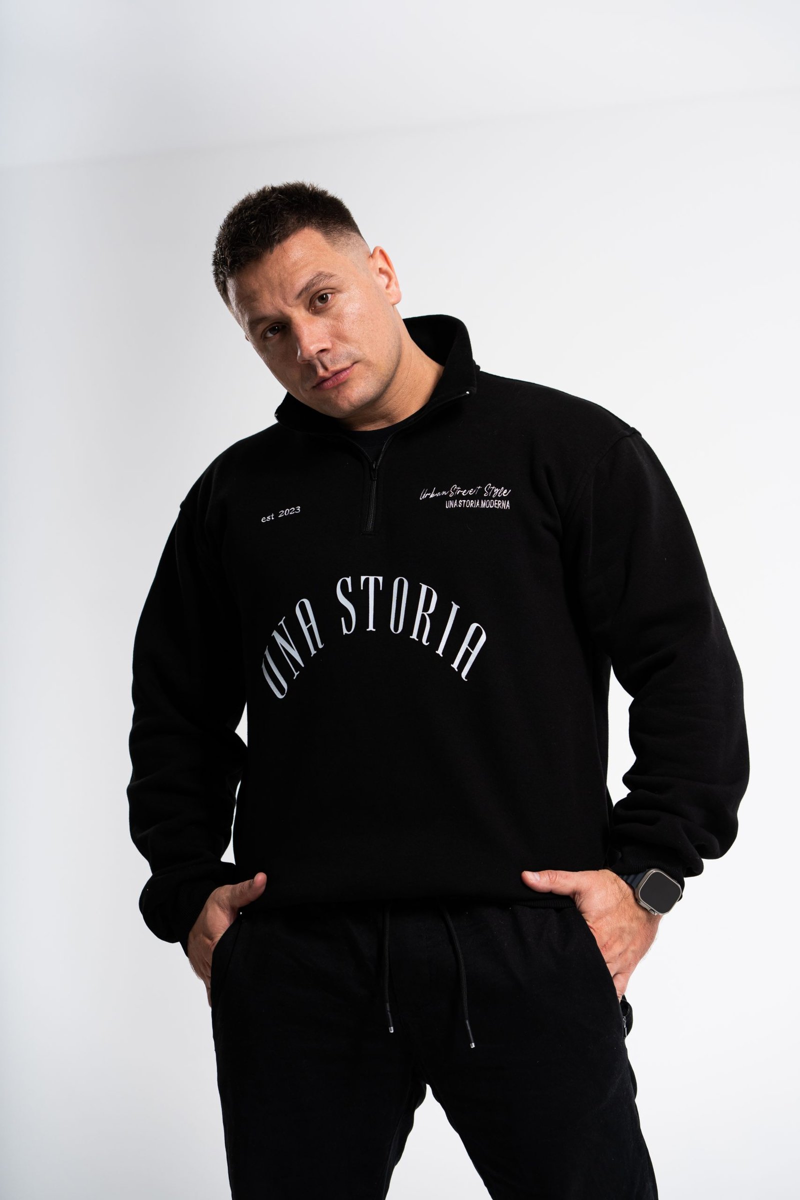 Безвременски, црниот дуксер зборува многу со својата едноставност — парче кое се препорачува за лесен впечаток.